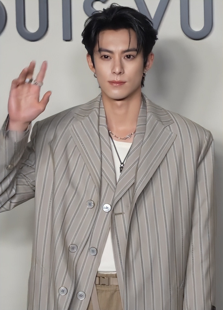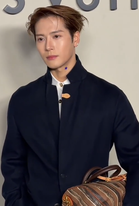 男明星中王嘉尔身穿V领黑西装,造型贵气又简约,帅得很轻松。
