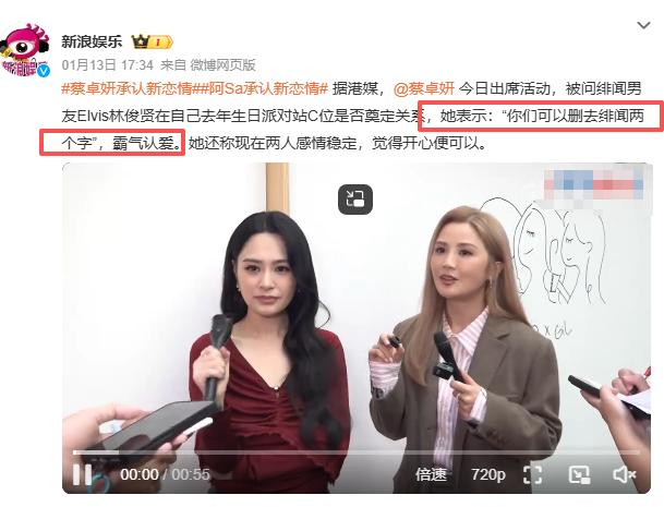 阿Sa蔡卓妍大方承认恋情 称与现任男友感情稳定很开心.搜狐娱乐.2026-01-13