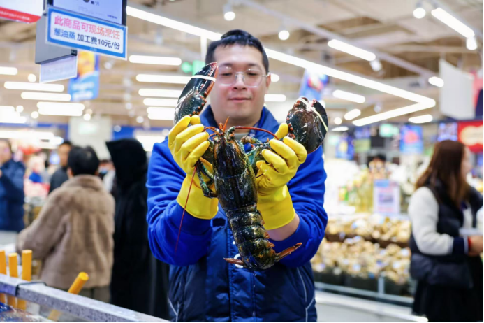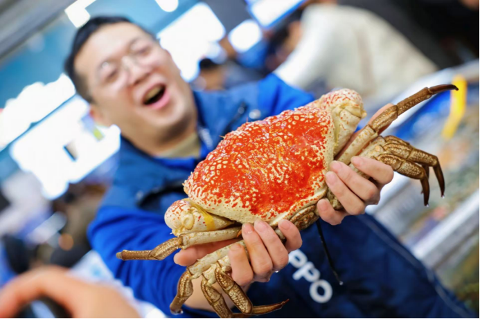 随之而来的元旦假期,每天有数万人次涌入门店,购物车排起长队,蓝莓、车厘子单日销量轻松破千份,帝王蟹、三文鱼等高端生鲜更是被疯抢一空。