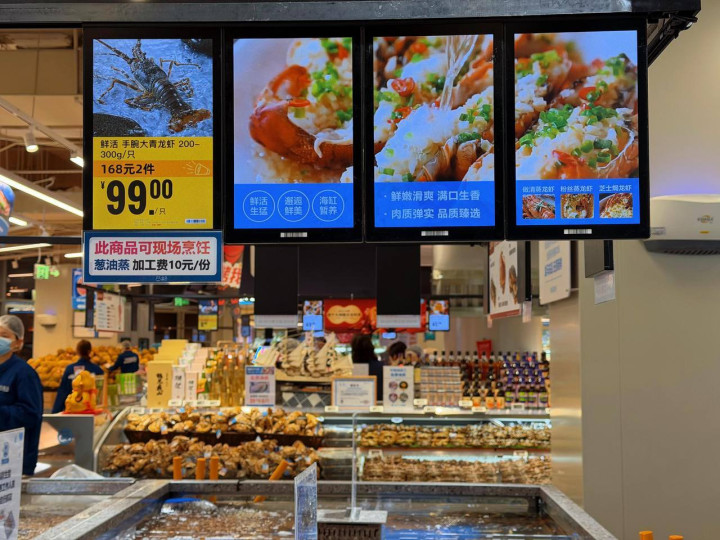 在盒马温州万象城店,开业当天贡献了不少名场面:人气商品上架即售罄,连手推购物车都经历了一回“紧急补货”,隔壁商铺的热心店员在社交平台当起了“小灵通”,及时播报新店的实时客流;