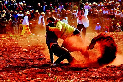 国家级非遗项目彝族摔跤。云南石林县委宣传部提供