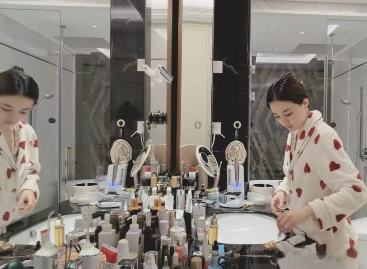 她晒出自己晚上回到家录制的琐碎小事vlog,一打开洗手间的门就被台面上的瓶瓶罐罐吸引了,虽然知道女明星都爱保养,但那么多种类的护肤品堆在一起,几十个瓶子看起来又杂又乱,哪天想用其中某一瓶,也得翻找很久吧。