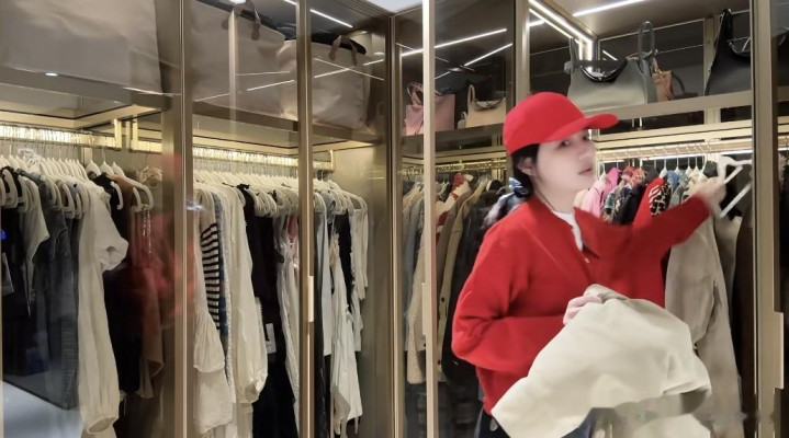 她还在衣帽间拍过视频,衣柜门都是茶色玻璃,能清楚看到里面挂着密密麻麻的四季衣物,说是服装店规模也不夸张。