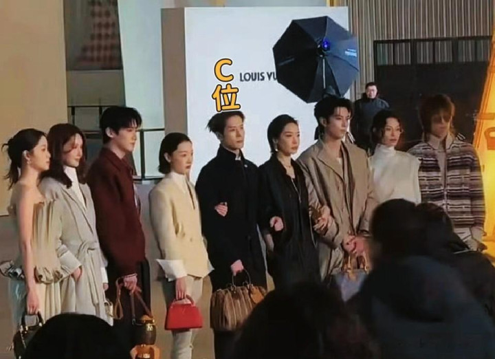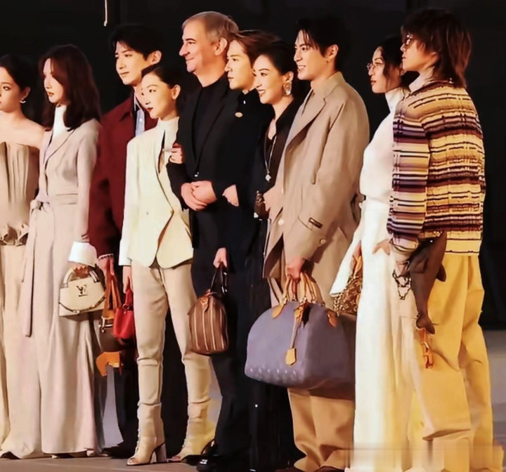 在别的明星陆续上场时,LV的负责人也是热情上台与明星们拍摄大合照,因为拍摄大合照时王嘉尔站的是C位,因此负责人站在了王嘉尔与周冬雨中间。
