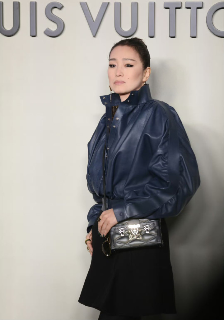 但若论咖位气场和表现力非巩俐莫属,站在一群身材高大的安保中间,戴着墨镜的巩俐依然女王范十足,她穿着短款卡腰蓝色皮衣,全包黑色上扬眼线配上裸色唇彩,妆容虽然干净清透,却给人一种生人勿近的强大磁场。