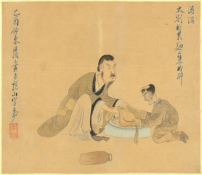 明代《陶潜轶事图》局部“与颜延之饮酒”