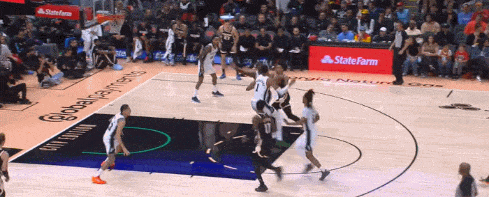 突破进入内线后 发现文班和底线防守人都来协防 空中传球到底角