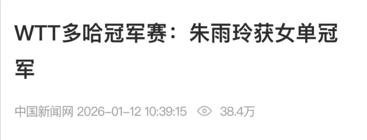 中新网:《WTT多哈冠军赛:朱雨玲获女单冠军》
