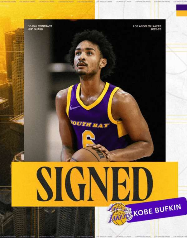 湖人已经与科比-巴夫金签下了一份10天合同。很多人不知道他其实是一名名副其实的首轮秀。在2023年选秀大会首轮第15顺位被选中,之后被老鹰交易到篮网,随后被篮网裁掉。随后加入G联盟南湾湖人队。他在G联盟赛场打出了亮眼数据,场均得到26.7分、4.9个篮板、4.3次助攻、1.3次抢断和1.3次封盖。不光是得分,也展现出了精英级别的防守。